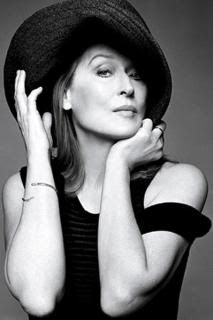 Growing old naturally and gracefully--such a rarity in Hollywood. We're bombarded with images of older women who are still trying to hang onto their glory days, and mostly it's a pretty sad effort. Meryl proves that glory days aren't just about wrinkle-free skin and pretending you can stop the clock.